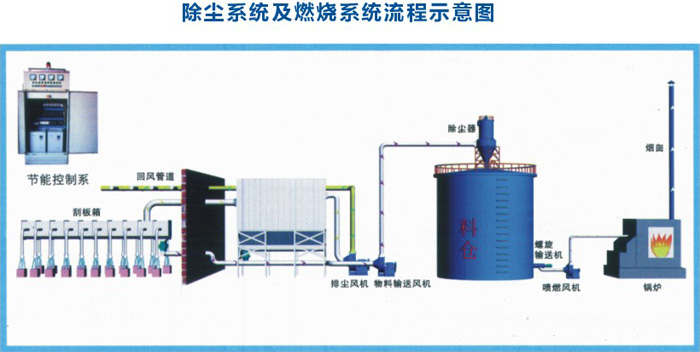 除塵系統收集的大量木屑,刨花及砂光粉塵如果不及時加工打包處理或者在側利用,會很容易造成火險隱患和二次污染,采用打包處理的再利用方式勞動強度大,工作環境惡劣,而且不可避免產生污染。目前較簡單,節約且有效的方法,是將這些碎料輸送到大型自動拔料儲料倉緩沖存器,然后經過螺旋輸送機定量排進風送管道,由噴燃風機,噴入鍋爐中充分燃燒,鍋爐產生的蒸汽,熱水可供給干燥窯,生產車間,辦公室等企業內各部門使用,整個系統保證了廠區環境的清潔,實現了粉塵的快速風送與利用,同時降低了粉塵處理的勞動強度,節能降耗,經濟效益顯著。我公司生產的全自動撥料儲料倉,設計先進結構合理,運行可靠,內部采用立式低阻撥料器防止碎料粉塵搭橋阻塞,確保排料順暢,該技術已獲國家專利。